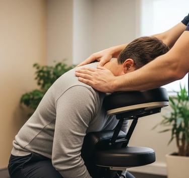 Massagem rápida focada em pescoço, costas e ombros, ideal para aliviar tensões do dia a dia.